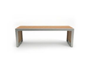 Fabricado en acero inoxidable y revestido en madera plástica, combina alta resistencia estructural con un bajo requerimiento de mantenimiento. La madera plástica aporta una apariencia cálida y uniforme, mientras que el acero inoxidable garantiza durabilidad, higiene y excelente comportamiento frente a la intemperie.