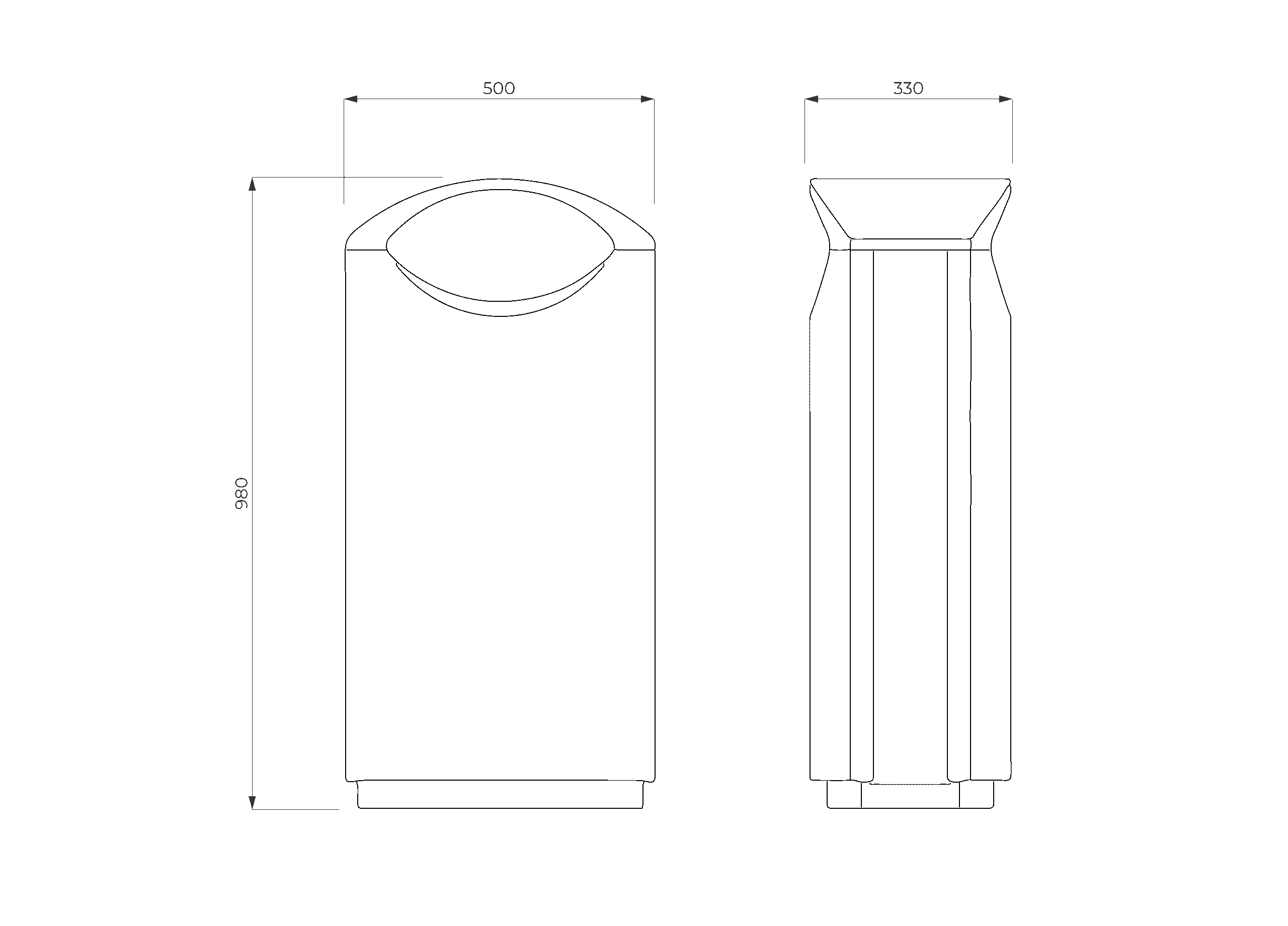 El Cesto Glow presenta una silueta sobria y moderna, pensada para integrarse con naturalidad en espacios urbanos actuales. Su diseño compacto y de líneas continuas permite una lectura clara y ordenada, siendo una solución adecuada para plazas, veredas, paseos peatonales y áreas de alto tránsito.